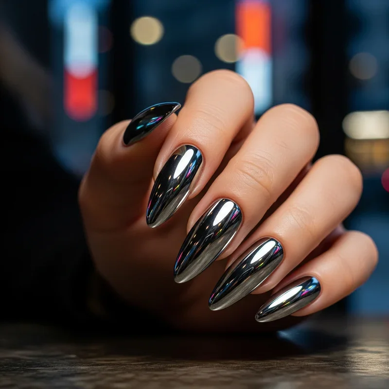 Step into the future with chrome mirror nails that literally reflect your fabulous taste! This ultra-modern finish creates a liquid metal effect that's impossible to ignore. The secret lies in special chrome powders that transform regular polish into a mirror-like surface. Silver chrome offers that classic futuristic vibe, while rose gold chrome adds warmth and femininity. For the bold at heart, try oil slick chrome that shifts between multiple colors like purple, green, and blue. The smooth, reflective surface makes your nails look like they're made of precious metal. Chrome nails photograph beautifully and are perfect for those who want their manicure to be a conversation starter. Just prepare yourself for constantly checking out your reflection in your own nails!