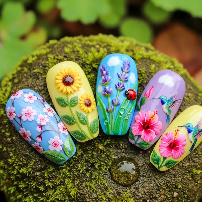 Bringing the beauty of nature to your fingertips, floral acrylic designs are perfect for those who love feminine and romantic styles. From delicate cherry blossoms to bold tropical hibiscus, flowers on nails never go out of style. You can opt for hand-painted designs that showcase intricate petals and leaves or go for simpler options like floral decals or stamps. The placement possibilities are endless too; scatter tiny blooms across all nails, create a feature nail with one large flower, or design a garden scene that flows across multiple nails. Spring pastels work beautifully for subtle looks, while vibrant colors make summer statements. Adding dimensional elements like rhinestone centers or 3D acrylic flowers takes the garden party to the next level.