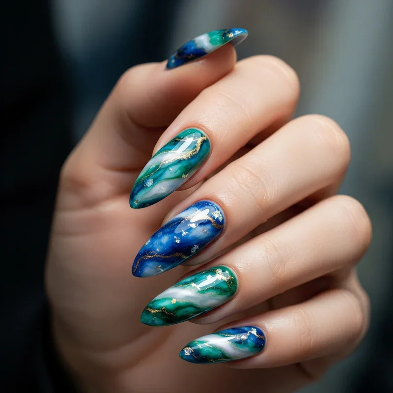 Marble nails are like wearing tiny pieces of art on your fingertips, and honestly, who wouldn't want that? This sophisticated design mimics the natural veining found in marble stone, creating an elegant and unique pattern on each nail. The technique involves swirling different polish colors together to achieve that authentic marble effect. White and gray combinations offer a classic look, while experimenting with colors like rose gold, deep blues, or emerald green adds a modern twist. No two nails ever look exactly the same, which is part of the charm. The organic patterns make each manicure truly one-of-a-kind. Marble nails work exceptionally well for special occasions but are subtle enough for everyday wear when done in neutral tones.