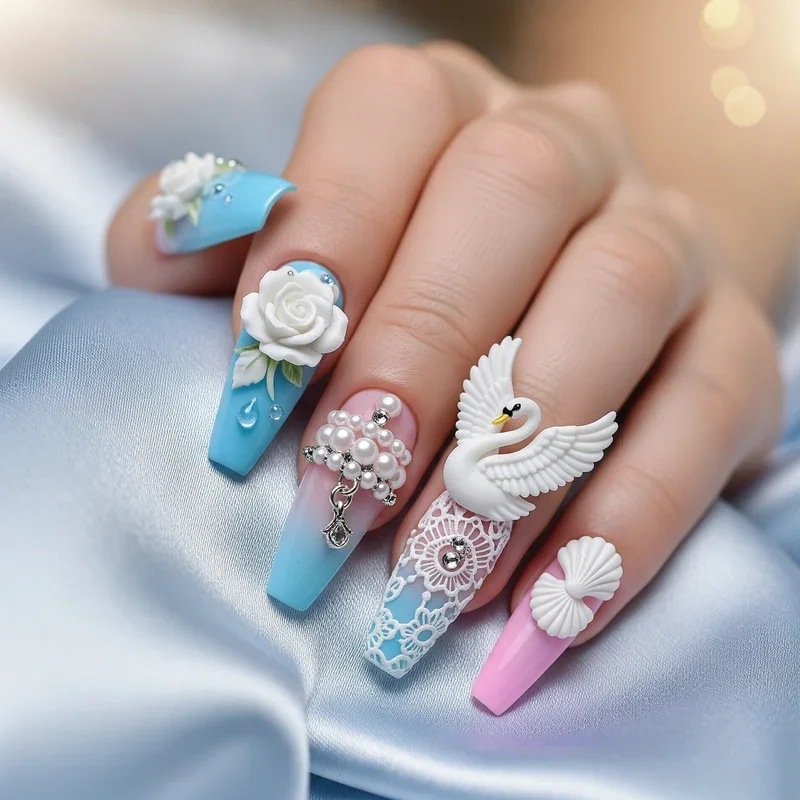 Ready to take your nail game to the next level? 3D nail art sculptures transform your fingertips into miniature art galleries with raised designs that literally pop off the nail. From tiny roses and bows to intricate butterflies and even miniature characters, skilled nail technicians can create almost anything in 3D. These designs use special acrylic techniques to build dimensional elements directly on the nail. While definitely more high-maintenance than flat designs, 3D nails are perfect for special events or when you really want to make a statement. The key is balancing the 3D elements so they're eye-catching but still practical for daily activities. Consider placing sculptures on just one or two accent nails for impact without inconvenience.