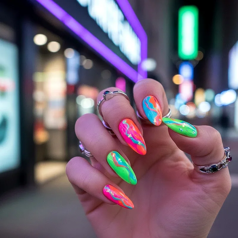 Neon nails deliver an electrifying punch of color that ensures your hands never go unnoticed. These ultra-bright shades work particularly well during summer but brave fashionistas rock them year-round. You can choose single neon shades for cohesive impact or mix multiple neons for a vibrant effect. Neon colors photograph incredibly well under both natural and artificial lighting. The intensity embodies pure baddie energy, showing you're not afraid to stand out. Pairing neons with matte topcoats creates interesting textural contrast while maintaining impact. These shades work across all nail lengths and shapes. Neon nails serve as instant mood boosters, radiating positive, fearless energy with every hand gesture you make.