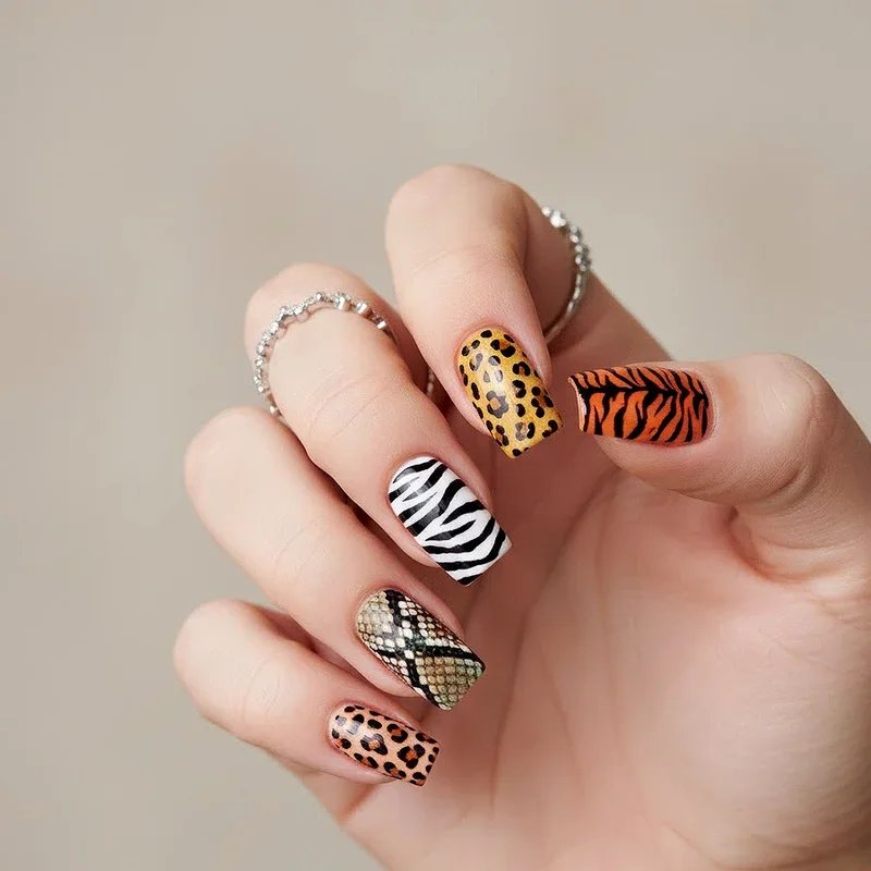 Animal print nail art channels fierce, primal energy while maintaining sophisticated style. Leopard spots, zebra stripes, and snake scales translate beautifully to nail designs with endless possibilities. You can keep prints in classic colorways or experiment with unconventional hues like pink leopard. This design works particularly well as accent nails paired with solid colors. Animal prints tap into fashion's timeless love affair with wildlife-inspired patterns. The organic, asymmetrical nature means slight imperfections enhance authenticity rather than detract. You can mix different animal prints on various nails for maximum creative expression. Animal print nails prove you can be both wild and refined simultaneously, embodying that perfect baddie balance everyone seeks.