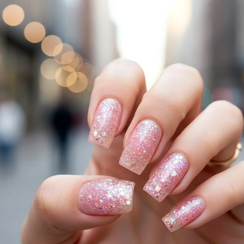 Jelly nails featuring suspended glitter create a translucent, luminous effect reminiscent of colorful glass or candy. The sheer base allows glitter particles to float in dimensional space, creating depth impossible with opaque polishes. This design works beautifully in various colors from soft pastels to vibrant brights. The translucent nature means your natural nail shows through slightly, creating a seamless, natural-looking extension. Glitter adds necessary sparkle and baddie credentials to what might otherwise read as too subtle. The combination photographs gorgeously, creating gem-like appearances that glow in proper lighting. Jelly nails offer a fresh, youthful vibe while maintaining sophistication through their unique textural quality. This style proves that baddie nails don't always require bold opacity.