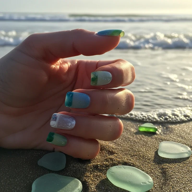 13. Beach Glass Inspired Nails