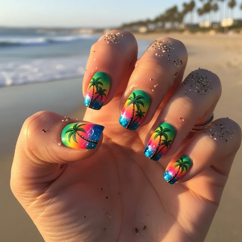 4. Palm Tree Paradise Nails