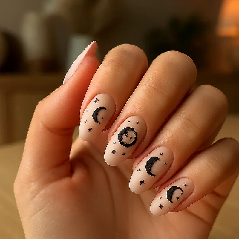 Embrace your inner moon child with mystical lunar designs that track celestial movements across your fingertips in stunning bohemian style. These designs feature crescents, full moons, and everything in between, often combined with stars and cosmic elements for full astronomical effect. Create gradient backgrounds transitioning from deep midnight blue to purple, then add moon phases using white or metallic silver polish for that ethereal glow. Each nail can represent a different phase, telling the complete lunar story from new moon to full and back again. Incorporate tiny stars using dotting tools or glitter polish to create your personal galaxy, and consider adding subtle shimmer to mimic moonlight reflecting off water. This design speaks to those who feel connected to lunar energy and want their nails to reflect their cosmic consciousness.