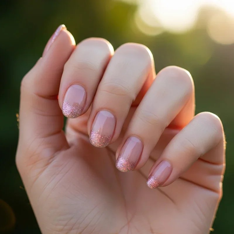 Give the classic French manicure a sparkling upgrade with subtle glitter tips that add just the right amount of pizzazz to your bridesmaids' nails without overwhelming their look. Instead of traditional white tips, fine glitter in silver, gold, or rose gold creates a festive yet refined look perfect for celebrations and special moments. The glitter concentration at the tips draws the eye upward, making fingers appear longer and more elegant in photos while adding that celebratory sparkle. Your bridesmaids will love how this design catches light during dancing, adding extra sparkle to the reception festivities and creating magical moments. The key to perfection lies in using ultra-fine glitter that creates a smooth, professional finish rather than chunky particles that might snag on delicate fabrics. This versatile design works with any base color, from classic nude to soft pink, allowing customization while maintaining cohesion across your bridal party. The subtle sparkle adds just enough glamour to feel special without competing with other wedding elements.