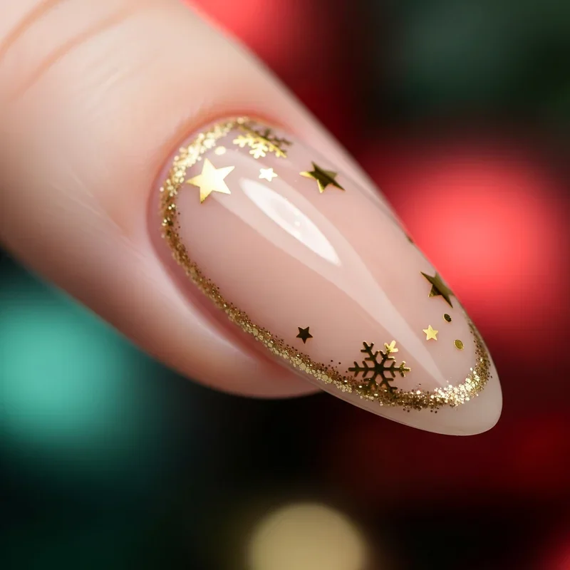 For those who prefer understated elegance, this sophisticated design offers holiday glamour without the bold colors. Begin with a nude base that complements your skin tone, creating a clean, polished canvas. Then, add delicate gold details like thin lines, dots, or abstract patterns. Consider incorporating subtle Christmas motifs like minimalist trees or stars in gold. The beauty lies in the restraint; less truly is more with this design. Gold leaf or foil can add texture and luxury to accent nails. This manicure transitions seamlessly from day to night and pairs beautifully with any holiday outfit. It proves that Christmas nails don't need to be loud to be absolutely stunning! The key to mastering this look is choosing the right nude shade - it should enhance your natural nail bed rather than wash it out. Gold accents can be applied using striping tape for precise lines, or freehand for a more organic feel. Try creating negative space designs where gold forms the outline of Christmas shapes. This design is perfect for formal events, professional settings, or anyone who prefers their holiday spirit to be subtle yet unmistakably present.