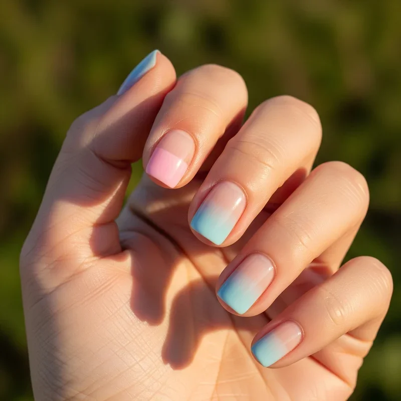 Forget choosing just one color when you can have them all! Pastel rainbow tips bring a playful twist to your short nails without being too loud or childish. Each nail gets its own soft, dreamy shade at the tip, creating a gradient effect across your hands that's absolutely Instagram-worthy. Think baby blue, soft pink, mint green, lavender, and buttery yellow working together in harmony. The pastel palette keeps things sophisticated while the rainbow element adds fun. You can do straight tips for a modern look or curved ones for something more traditional. This design works beautifully for spring and summer, but honestly, who doesn't need a little rainbow magic all year round?