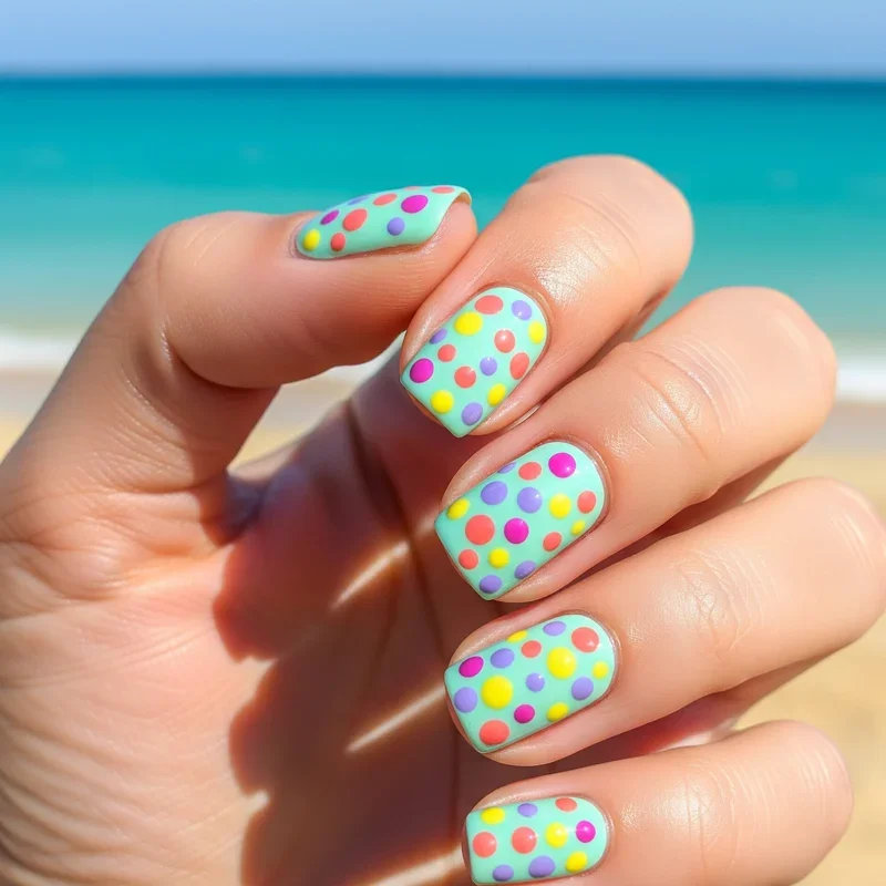 Polka dots are having a major moment, and your short nails are the perfect place to join the party! This retro pattern brings instant cheerfulness to any manicure, whether you go for classic black dots on white or mix it up with unexpected color combinations. The size of your dots matters on short nails; tiny micro dots create a delicate, sophisticated look, while larger dots make a bold statement. You can use a dotting tool, bobby pin, or even a toothpick to create perfectly round dots. Try varying the sizes for a playful bubble effect, or keep them uniform for a more polished appearance. Polka dots prove that simple patterns can pack a serious style punch!