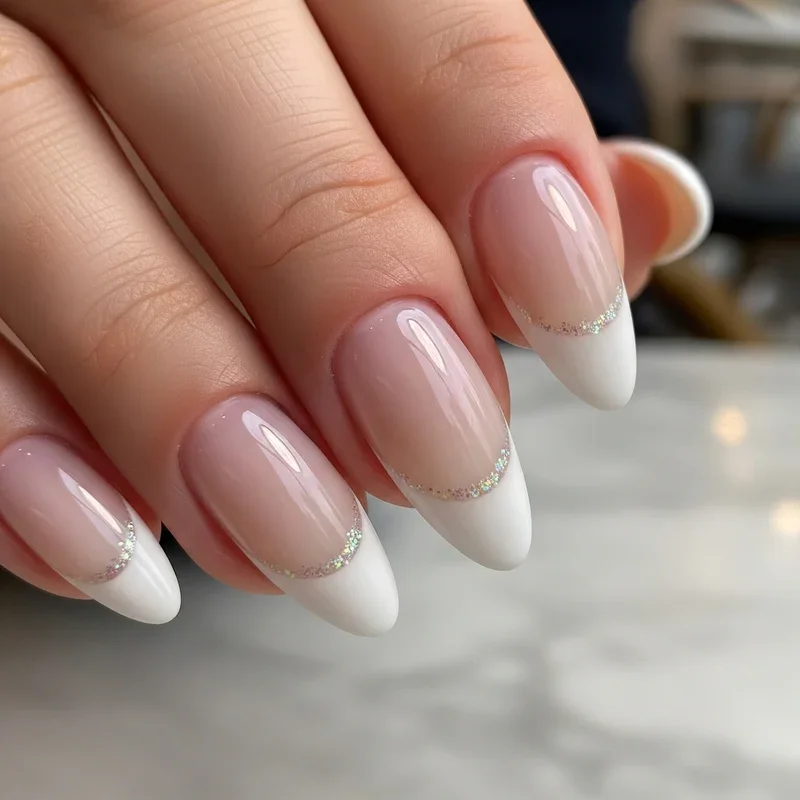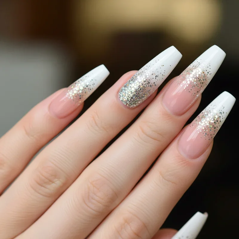 Get ready to sparkle like never before! Glitter ombre French tips combine the elegance of traditional French nails with the glamour of sparkly gradients. Start with a nude or pink base and gradually blend glitter from the tips down, creating a mesmerizing fade effect. You can choose fine glitter for subtle shimmer or chunky glitter for maximum impact. This design works beautifully with silver, gold, or even holographic glitter. The best part? It catches light from every angle, making your hands look absolutely magical. Whether you're heading to a wedding, party, or just want to add some pizzazz to your everyday look, glitter ombre French tips never disappoint. They're like wearing tiny disco balls on your fingertips!