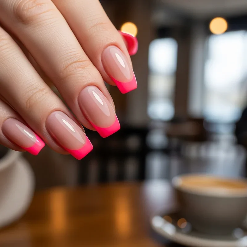 Turn up the volume on your nails with neon French manicure tips that practically glow in the dark! These electric shades like hot pink, lime green, orange, and yellow create a bold statement that's perfect for summer festivals, beach vacations, or whenever you want to stand out. The contrast between a nude base and neon tips creates a modern, youthful look that's both fun and fashionable. You can stick to one neon shade or mix different colors for a more playful vibe. These nails are conversation starters and mood lifters rolled into one. They're perfect for those who aren't afraid to be the center of attention!