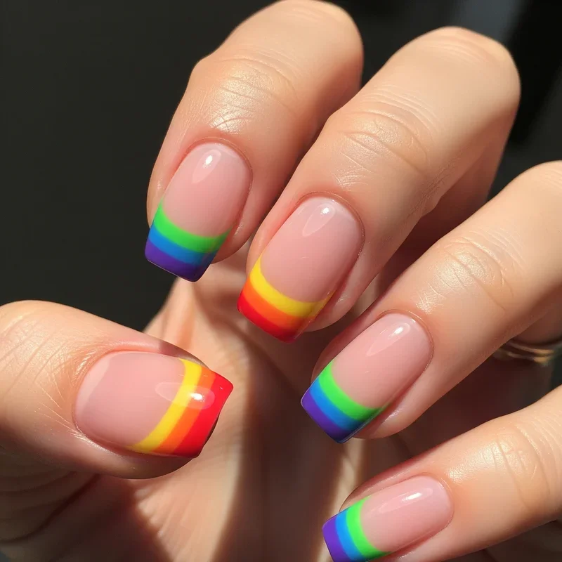 3. Colorful Rainbow French Manicure