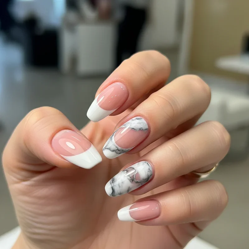 9. Marble Effect French Nails