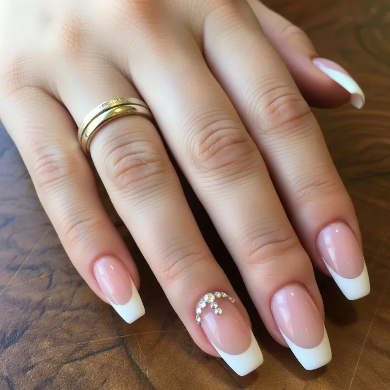 11. French Manicure with Rhinestone Accents