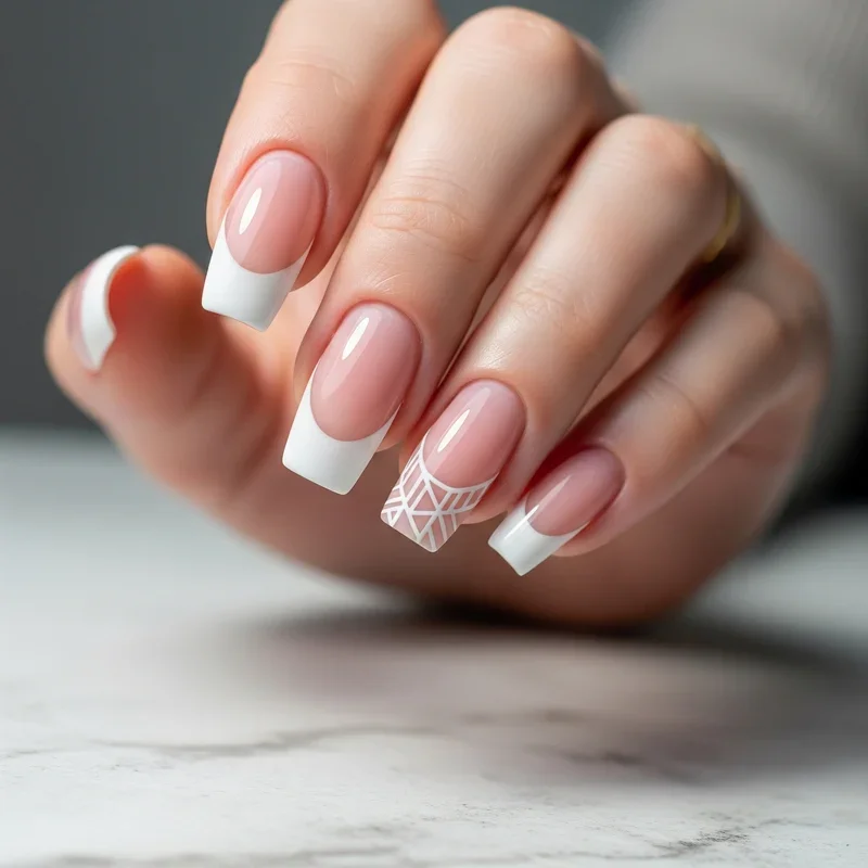 7. Geometric French Manicure Pattern