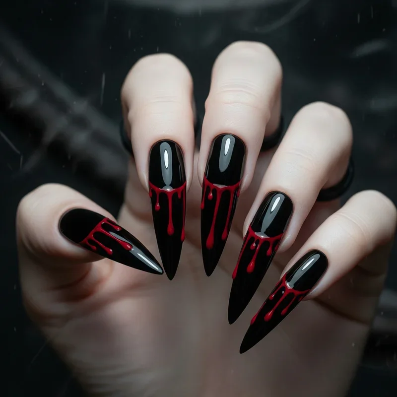 Ever wondered what vampire chic looks like on your fingertips? The blood drip design answers that question with style and drama. Start with a deep black base and carefully apply rich crimson polish to create realistic dripping effects from your nail tips or cuticles. The contrast between the darkness and the vivid red creates an eye-catching effect that's both haunting and beautiful. You can use a thin nail art brush or even a toothpick to perfect those drip patterns. This design particularly shines during Halloween season but honestly, who's stopping you from rocking it year-round? The key to nailing this look is patience and steady hands, as rushed drips tend to look more like blobs than blood. Consider varying the drip lengths and positions across different nails for a more organic, realistic appearance.
