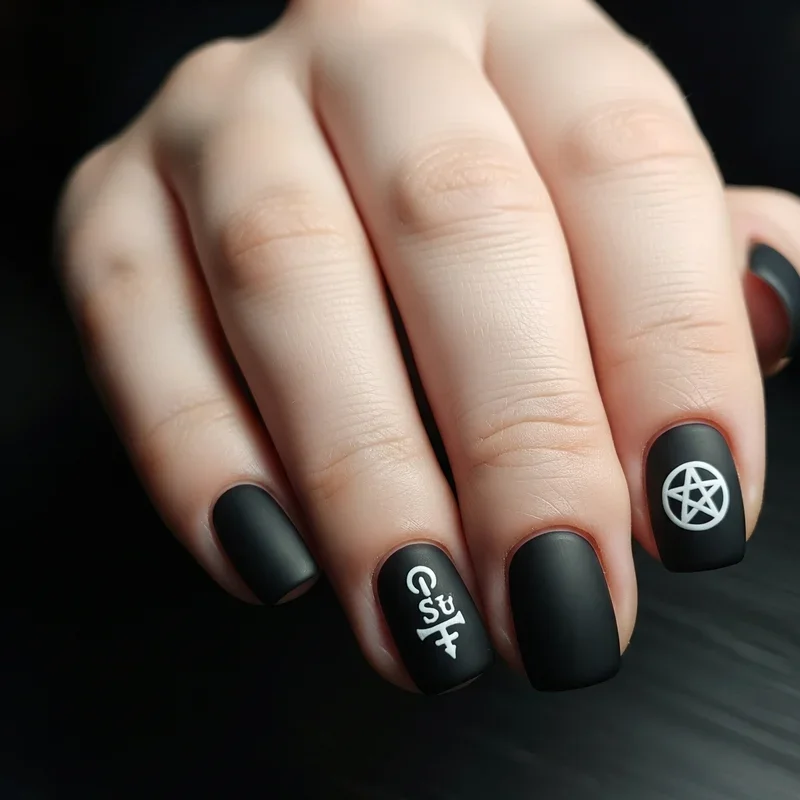 Embrace the mystical side of goth culture by adorning your nails with pentagrams, ankhs, crescents, and other occult symbols that speak to your spiritual darkness. These designs can range from subtle single symbols on accent nails to intricate patterns covering all ten fingers. Using metallic polish for the symbols against a matte black background creates stunning contrast that makes each symbol pop. You can find nail stickers and stamps featuring these designs, or challenge yourself with freehand painting using a thin brush. The beauty of occult nail art lies in its personal meaning; each symbol tells a story and represents different aspects of gothic spirituality. Remember to seal everything with a quality topcoat to protect your mystical masterpiece. These symbols connect you to ancient traditions while expressing your modern gothic identity.