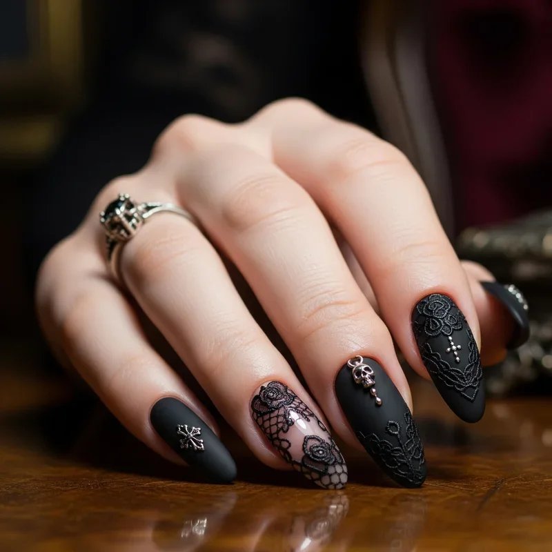 Discover 15 stunning goth nail designs from classic black to intricate lace patterns. Transform your nails into dark masterpieces today!