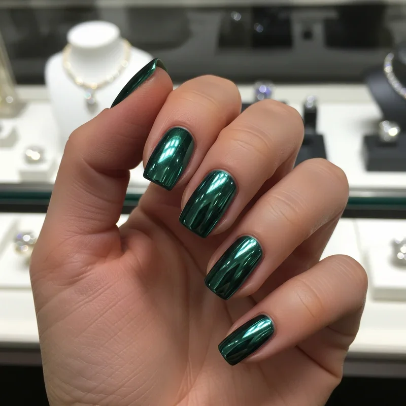 Talk about making a statement! Emerald chrome nails are like wearing liquid jewelry on your fingertips. This ultra-glossy, mirror-like finish catches light from every angle, creating a mesmerizing effect that's impossible to ignore. The rich, deep green of emerald chrome screams luxury and sophistication. It's the kind of manicure that makes you feel like a million bucks, even if you're just typing away at your desk. The application process involves a special chrome powder that's buffed onto a tacky base coat, creating that incredible metallic sheen. While it might require a trip to your nail tech, the results are absolutely worth it. These nails pair gorgeously with gold jewelry and look stunning against both light and dark outfits.