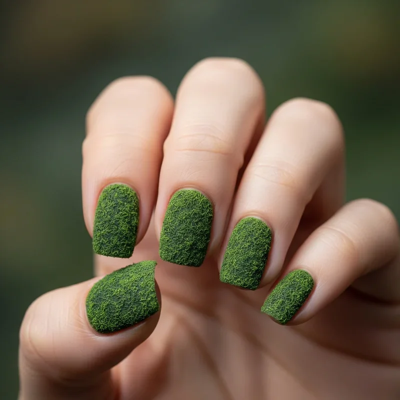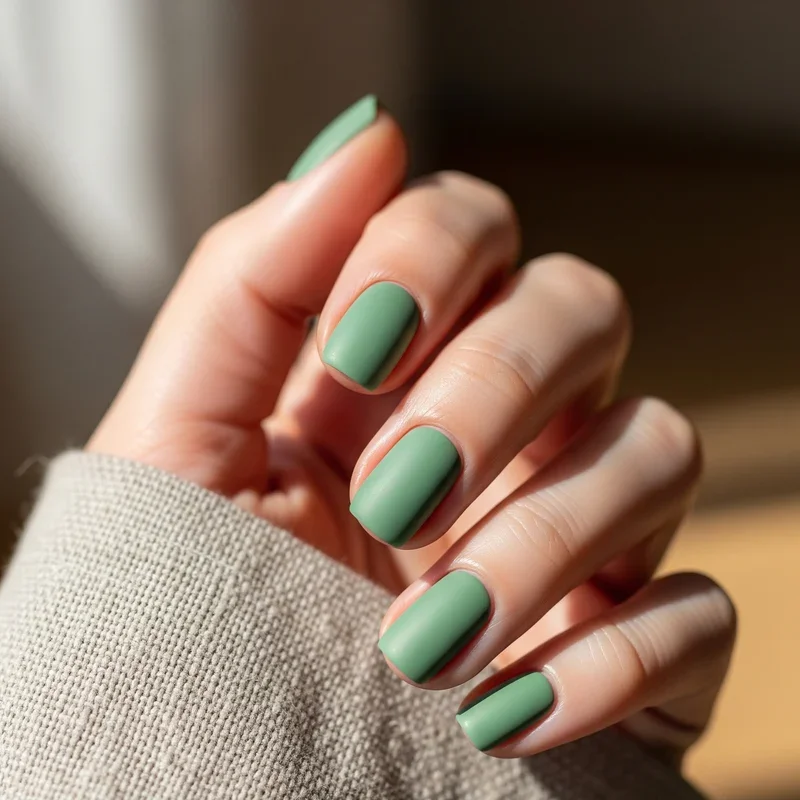 Bring the forest floor to your fingertips with moss green nails that celebrate all things natural and earthy! This muted, yellow-toned green has an organic quality that feels both grounding and stylish. It's like wearing a piece of nature's palette wherever you go. Moss green works beautifully with nature-inspired nail art. Think delicate fern patterns, subtle leaf prints, or even tiny mushroom designs for the cottagecore enthusiast. The color itself is surprisingly versatile, looking equally at home with boho chic outfits or sleek minimalist styles. For added texture, try combining moss green with a matte topcoat or add subtle gold flakes that mimic sunlight filtering through leaves. This shade is perfect for anyone who wants their nails to whisper rather than shout.