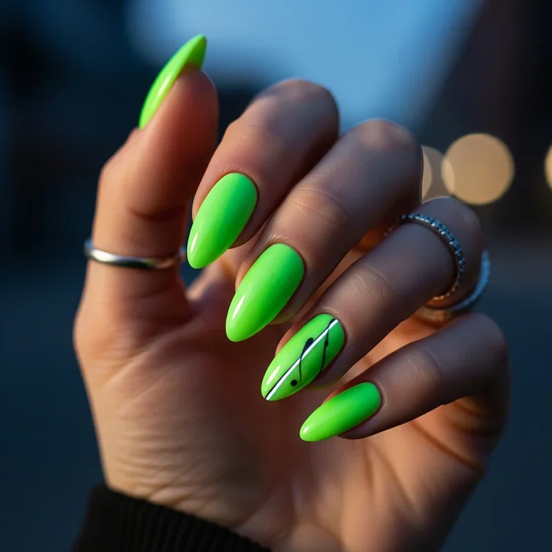 Ready to turn up the volume? Lime green neon nails are your ticket to instant fun and energy! This electric shade practically glows, making it perfect for summer festivals, beach vacations, or whenever you need a mood boost. There's something wonderfully rebellious about sporting neon lime tips. It's like telling the world you're here to have a good time and you're not afraid to show it. The key to rocking this bold shade is confidence. Pair it with neutral outfits to let your nails be the star, or go full maximalist with other bright colors. For an extra playful touch, try alternating lime green with hot pink or electric blue for a true neon rainbow effect.