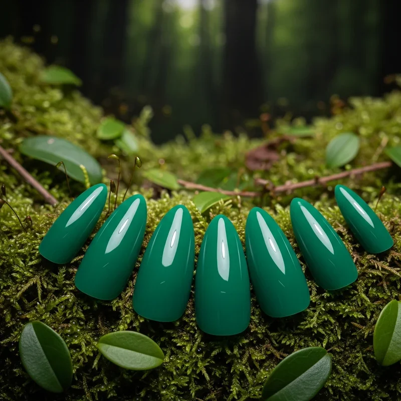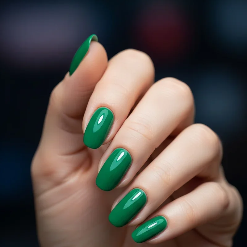 Bold, bright, and unapologetically green, kelly green nails are for those who love to make a statement! This true green shade sits right in the middle of the color spectrum, neither too blue nor too yellow, making it the perfect representation of classic green. There's something wonderfully retro yet timeless about kelly green polish. It reminds you of vintage fashion and classic cars while still feeling completely current. This shade looks incredible on all skin tones and really pops against both black and white clothing. For a modern update, try kelly green with geometric nail art or combine it with gold foil accents. It's also stunning as a simple, glossy single-color manicure when you want the color to do all the talking.