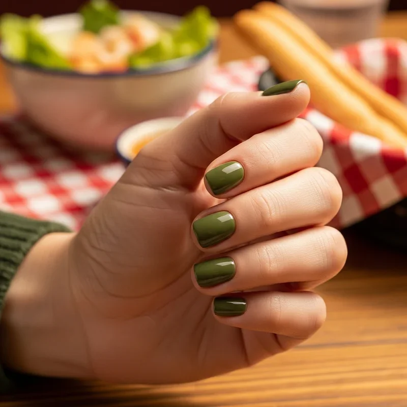 No, we're not talking about breadsticks! Olive green nails bring that perfect military-meets-chic aesthetic that's been dominating fashion runways. This versatile shade sits somewhere between green and brown, making it surprisingly wearable for those who typically shy away from bold colors. Think of olive as the chameleon of green nail shades. It can look edgy with matte finish and geometric designs or sophisticated with a glossy coat and gold accents. This color particularly shines in fall, complementing all those cozy sweaters and leather jackets in your wardrobe. For a modern twist, try olive green negative space designs or pair it with nude colors for a contemporary French manicure. The earthiness of olive makes it a perfect choice for anyone wanting to dip their toes into the green nail trend.