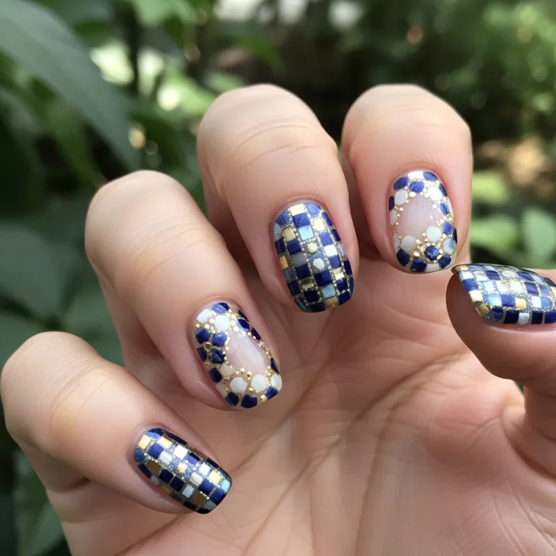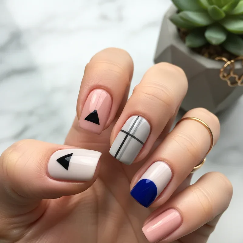 Why choose one design when you can have them all? Mixed pattern manicures let you showcase different techniques on each nail while maintaining a cohesive look. The trick is using a consistent color palette throughout. Try polka dots on your thumb, stripes on your index finger, solid color on the middle, negative space on the ring finger, and glitter on your pinky. As long as you stick to two or three colors maximum, the varied patterns create visual interest without looking chaotic. This approach is perfect for those who can never decide on just one design. It's also great for testing out new techniques; if one nail doesn't turn out perfect, it just adds to the eclectic charm of the overall look.
