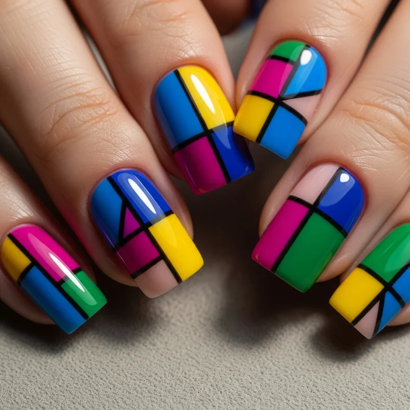 Color blocking brings fashion runway trends right to your fingertips. This bold design involves using two or more solid colors in distinct sections on each nail. The easiest approach? Paint each nail a different color from the same family. Want to level up? Use tape to create color blocks on individual nails. Try splitting nails diagonally, vertically, or even in thirds. The key to making color blocking work is choosing colors that complement each other. Think pink and orange, blue and green, or go for high contrast with black and white. This design makes a statement while remaining sophisticated enough for any occasion. Plus, if you're indecisive about which color to choose, why not use them all?
