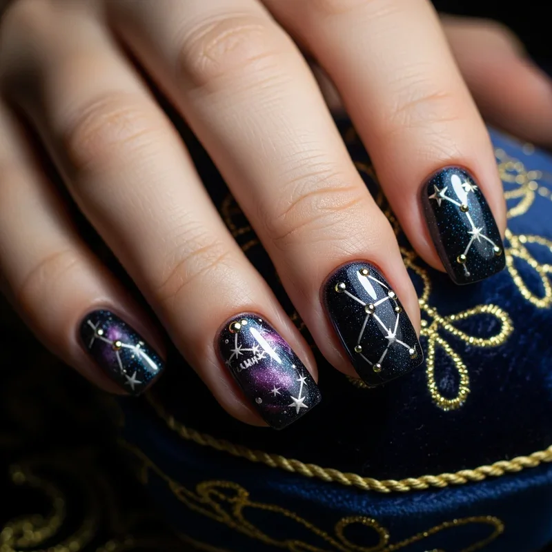 Bring the night sky to your nails with constellation designs that are out of this world. Start with a dark base like navy, black, or deep purple. Using a dotting tool or toothpick dipped in white or silver polish, create small dots to represent stars. Connect some dots with thin lines to form actual constellations, or just scatter stars randomly for a galaxy effect. Add variety by making some dots larger than others, just like real stars vary in brightness. For extra magic, add a touch of glitter polish over some stars to make them twinkle. This design looks especially stunning on shorter nails where the dark base doesn't overwhelm. It's perfect for those who want something unique but not too flashy.