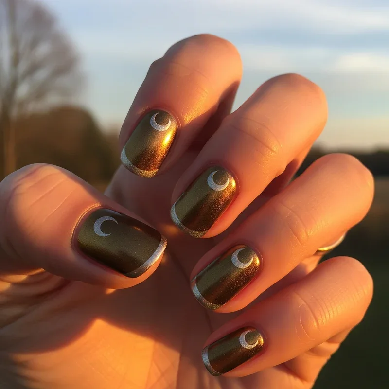 Channel November's mystical harvest moon with nails that shimmer like moonlight on autumn nights. Golden polish creates the perfect base for celestial-inspired nail art that feels both elegant and seasonal. Add moon phases across your nails or focus on one statement full moon design. Incorporate subtle glitter to mimic starlight or use chrome powder for that ethereal glow. The warm golden tones complement November's cozy aesthetic while adding touch of magic to your look. This design works beautifully for evening events where you want your nails to catch every flicker of candlelight. Your fingertips become tiny tributes to November's enchanting night sky.