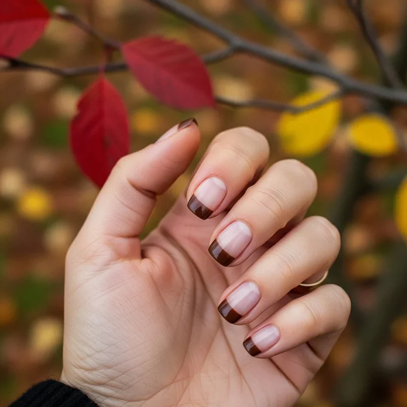 Sometimes less truly is more, especially with chocolate brown minimalist nail designs that whisper rather than shout. This sophisticated approach updates the classic French manicure with rich brown tips over nude or clear base. The result feels modern yet timeless, perfect for November's transitional weather. You'll appreciate how this subtle design complements every outfit without competing for attention. The chocolate brown shade adds warmth while maintaining professional polish suitable for any setting. Try varying tip thickness or adding single dot accent for personalized touch. This minimalist approach proves that November nails can be both understated and utterly chic.