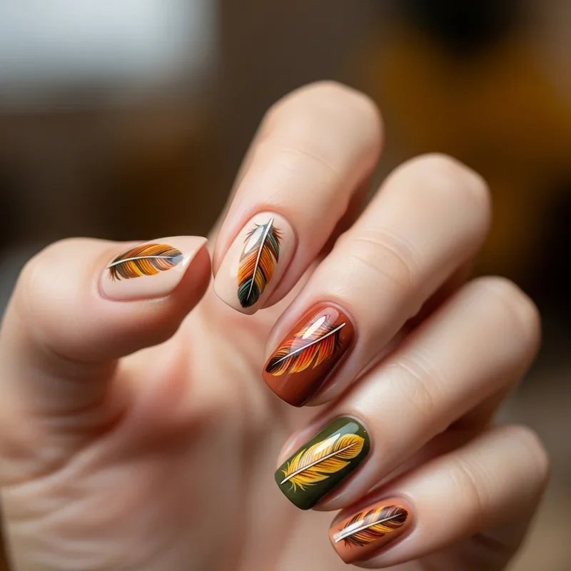 Celebrate November's biggest holiday with turkey feather nail art that's surprisingly chic, not kitschy! Instead of cartoon turkeys, focus on the natural beauty of feather patterns in warm browns, oranges, and golds. Create delicate feather designs using thin brushes or stamps for professional results. The key lies in choosing sophisticated color palettes that honor the holiday without looking juvenile. Add metallic accents to feather tips for elegant shimmer. This design starts conversations at Thanksgiving gatherings while showcasing your creative skills. You'll love how these nature-inspired patterns feel festive yet refined enough for any November occasion beyond the holiday table.