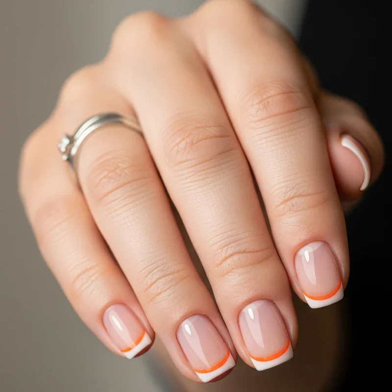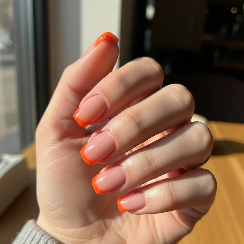 Who says French manicures have to be boring? Swap out those traditional white tips for vibrant orange and watch your nails go from basic to brilliant! This modern take on the classic French keeps things classy while adding a playful twist. You can go subtle with a thin orange line or make it bold with thicker tips. The best part? This style works on any nail length. Short nails look chic and professional, while longer nails give off major fashion-forward vibes. You can even play with different orange shades – maybe a neon tip for the weekend and a softer coral for work days. It's like having the best of both worlds: timeless elegance meets contemporary cool.