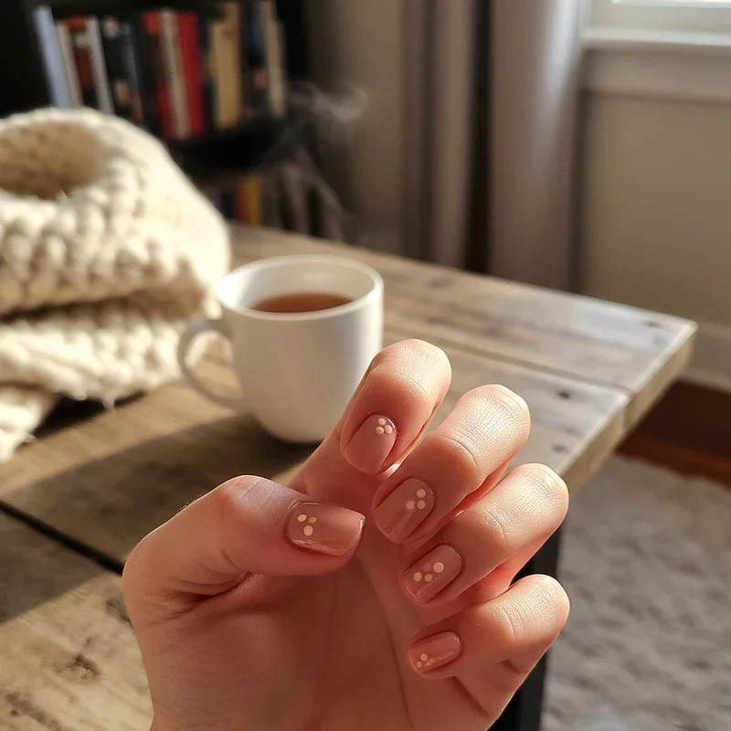 Sometimes simplicity speaks volumes, and minimalist peach dots prove that small details create maximum impact effortlessly. Use dotting tools or bobby pins to create perfect circles in varying sizes across nude or white bases. Arrange dots in straight lines, clusters, or random patterns depending on your aesthetic preferences and creativity levels. This technique requires minimal skill while delivering professional-looking results that impress without trying too hard. Consider using different peach shades for dots, creating tonal variations that add depth without introducing new colors. The playful yet sophisticated design works beautifully for casual and formal settings, proving versatility in simplicity. This low-maintenance art style touches up easily, making it perfect for busy individuals wanting stylish nails.