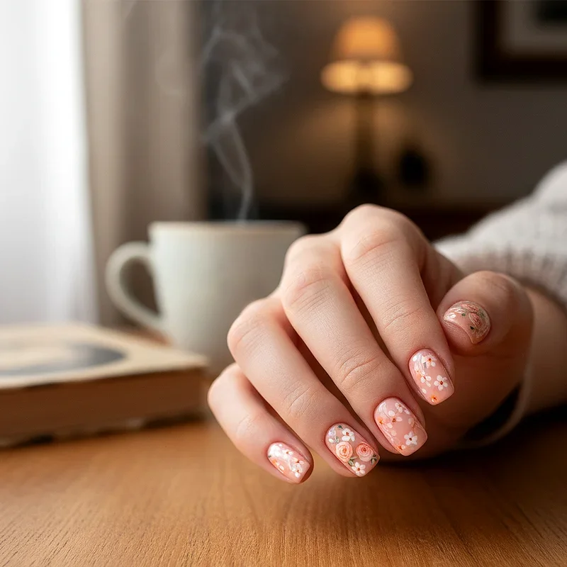 Channel garden party vibes with delicate floral designs painted over peach bases or incorporating peach blooms themselves. Use thin brushes or dotting tools to create petals, leaves, and stems that bring nature to your fingertips. White, green, and deeper coral accents complement peach flowers beautifully, creating depth and realism in your miniature botanical gardens. Consider placing florals strategically on accent nails while keeping others solid for balance and wearability. Water decals or stamps offer alternatives for those less confident with freehand painting but still craving floral beauty. This romantic style suits spring and summer occasions perfectly, from brunch dates to outdoor weddings. The feminine touch adds whimsy without appearing juvenile, making it appropriate for all ages.