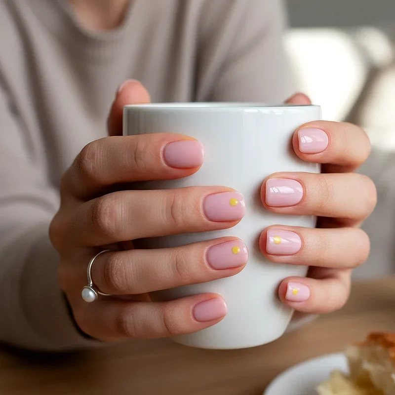 Sometimes less truly means more, especially when creating elegant dot patterns using pink and yellow polish on neutral backgrounds. This minimalist approach arranges small dots in various patterns like lines, clusters, or random scattering for understated sophistication. The simplicity of dots allows even beginners to achieve professional-looking results using just a dotting tool or bobby pin. You can vary dot sizes to create visual rhythm and movement across your nails without overwhelming the design. This style particularly appeals to those who want nail art that complements rather than dominates their overall aesthetic. The versatility of dot patterns means you can dress them up or down depending on the occasion.