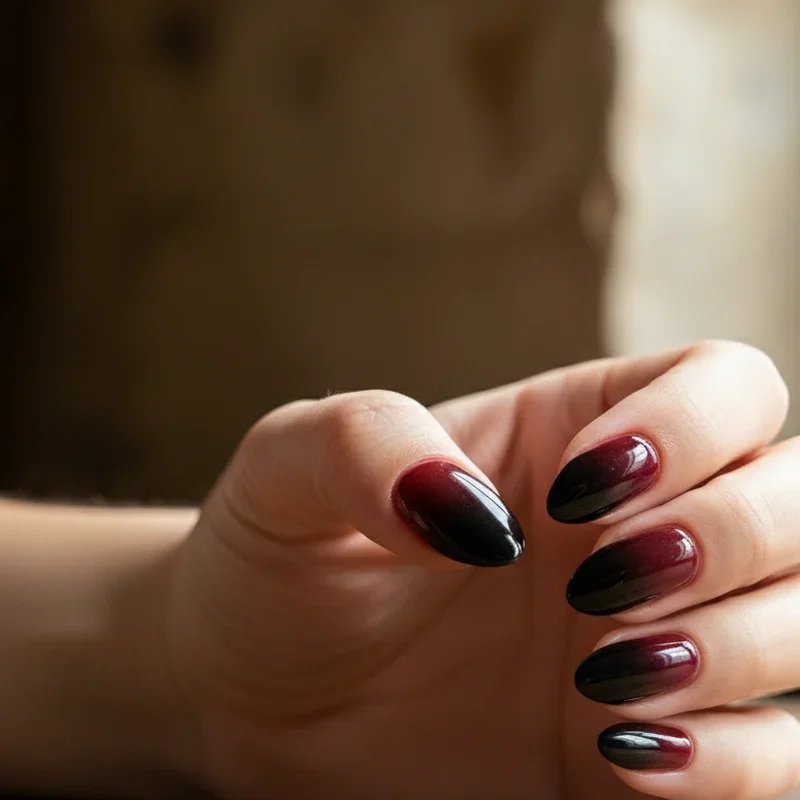 The ombre effect creates a stunning visual transition that makes red and black blend seamlessly like a sunset meeting the night sky. Start with a deep burgundy at the base and gradually fade into pure black at the tips, or reverse the gradient for an equally striking effect. Using a makeup sponge to dab and blend the colors creates that perfect gradient that looks professionally done. This technique works beautifully on longer nails where you have more space to showcase the color transition. Add a glossy top coat to enhance the smooth gradient effect, making your nails look like they've been dipped in liquid luxury that captures light from every angle.