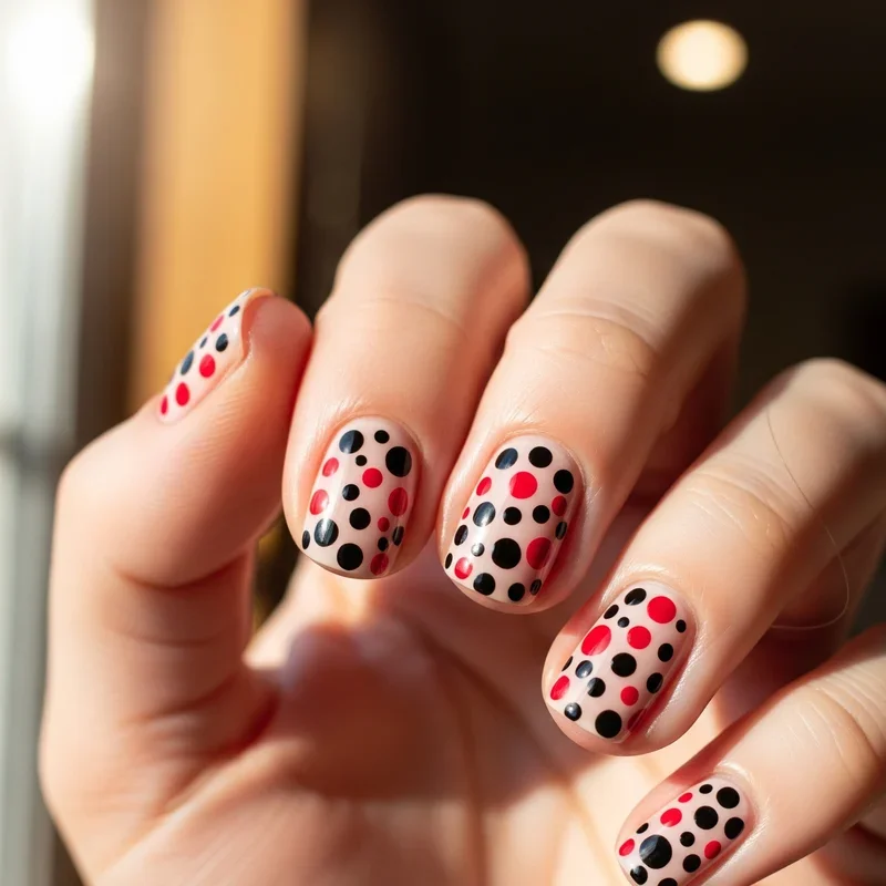 Sometimes less truly is more, and minimalist dot designs prove this perfectly with their understated yet impactful appearance. Use a dotting tool or even a bobby pin to create perfect circles in varying sizes across your nails. You might opt for a single red dot on a black base for each nail, or create a polka dot pattern that alternates between colors. This design works exceptionally well for those who want something stylish but not overwhelming, perfect for everyday wear or professional environments. The beauty of dot designs lies in their versatility; you can space them evenly for a structured look or scatter them randomly for a more playful, artistic vibe that reflects your personality.