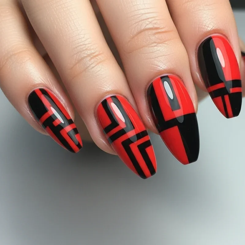 Q3: What nail shape works best for red and black designs?