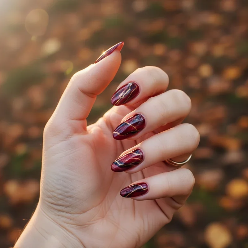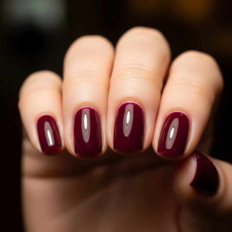When you want sophistication with a hint of mystery, burgundy nails deliver every time. This deep, wine-inspired shade of red works beautifully for fall and winter but honestly looks gorgeous year-round. Burgundy has this amazing ability to look professional enough for the office while still feeling special enough for date night. The darker tone is also more forgiving than bright reds, hiding minor chips and imperfections better. This rich shade sits somewhere between red and purple, creating a complex color that changes slightly in different lighting. Whether you choose a creamy burgundy or one with subtle shimmer, this shade complements all skin tones beautifully. It pairs especially well with gold jewelry and neutral outfits, adding just the right amount of color without overwhelming your look. Burgundy nails have a mature, refined quality that makes them perfect for professional settings where bright red might feel too bold. Consider burgundy your sophisticated sister to classic red - equally beautiful but with added depth and complexity.