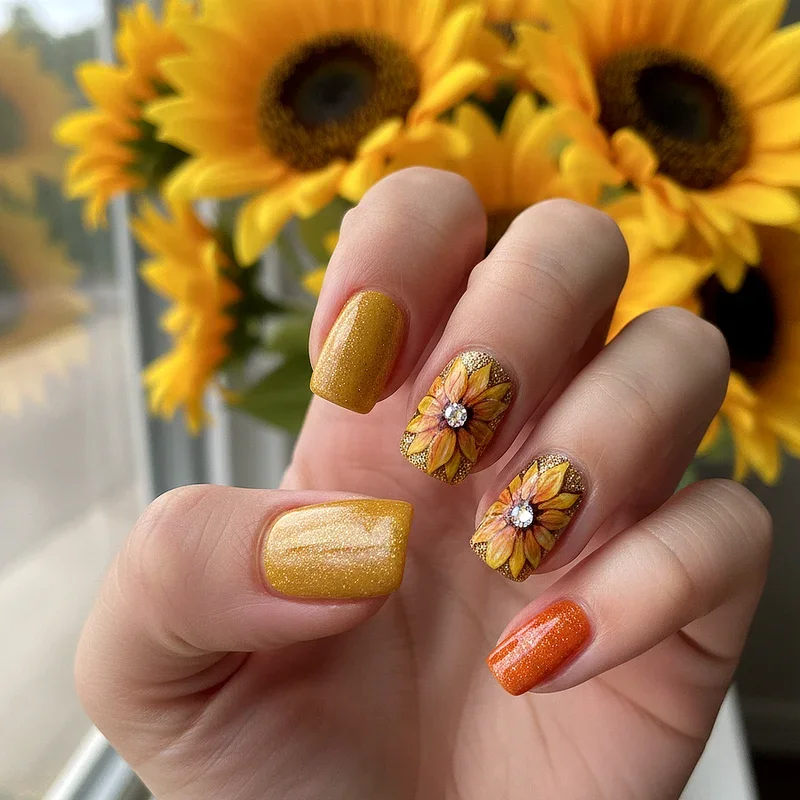 Discover 15 stunning sunflower nail designs that bring sunshine to your fingertips with vibrant yellows and creative patterns perfect for any season