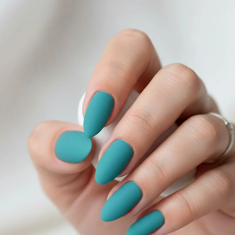 Matte finishes transform glossy turquoise into sophisticated velvety appearances feeling modern and fashion-forward compared to traditional shine. This trend-conscious look tones down brightness slightly while maintaining beautiful color intensity. Matte nails feel soft to touch and create interesting textural contrast when paired with glossy accent nails. The absence of shine gives turquoise more subdued elegant quality working particularly well in professional environments. You can achieve this finish using matte top coats applied over any turquoise polish, making it easy transformation. Consider combining matte and glossy finishes on different nails or creating patterns where both textures coexist. The matte effect highlights true pigment without light reflection distorting appearance.