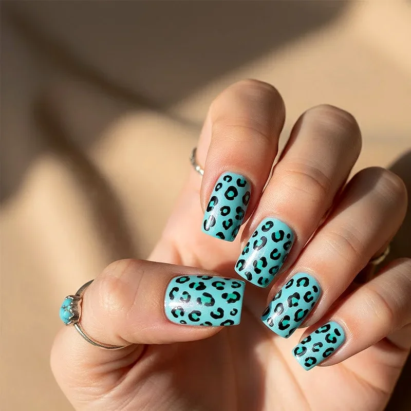 14. Turquoise Animal Print Nails