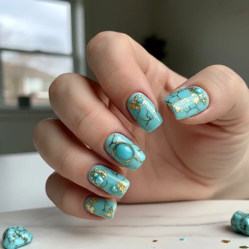 15. Turquoise Gemstone Inspired Nails