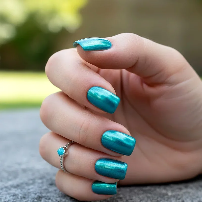 10. Turquoise Chrome Metallic Nails